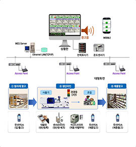 제품의 수주에서 자재의 입고와 생산관리 시스템을 거쳐 제품 출고까지 이루어지는 시스템