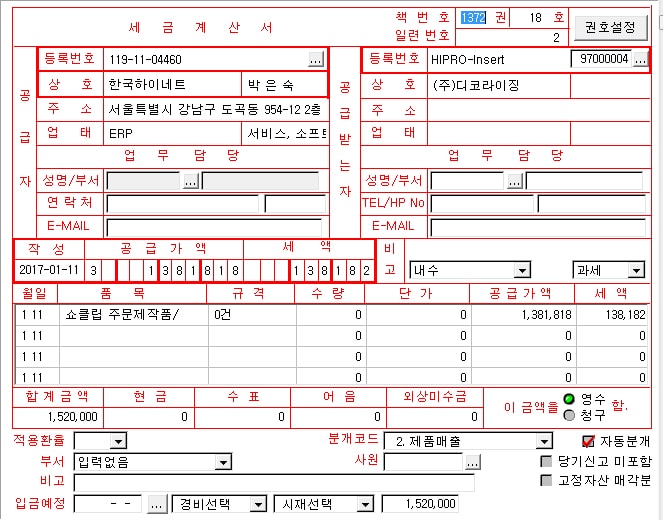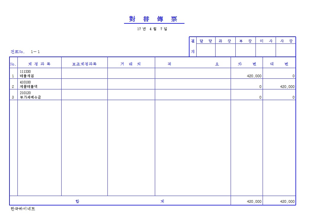 - 입금전표/출금전표/대체전표 구분 등록