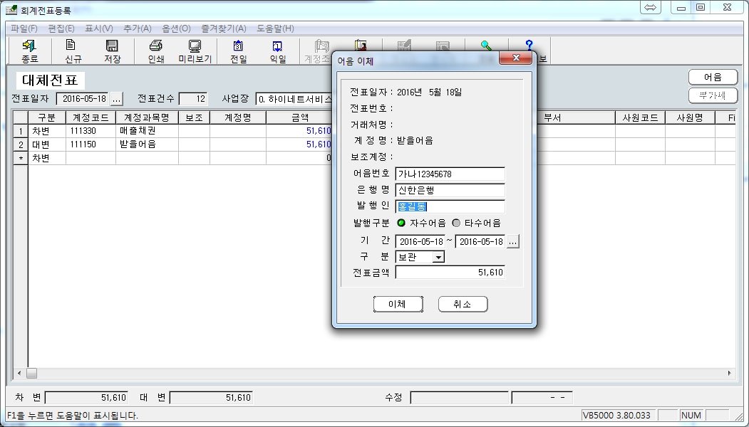 입금전표/출금전표/대체전표 구분 등록