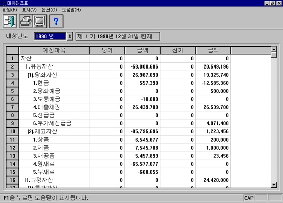 합계잔액시산표/대차대조표/손익계산서