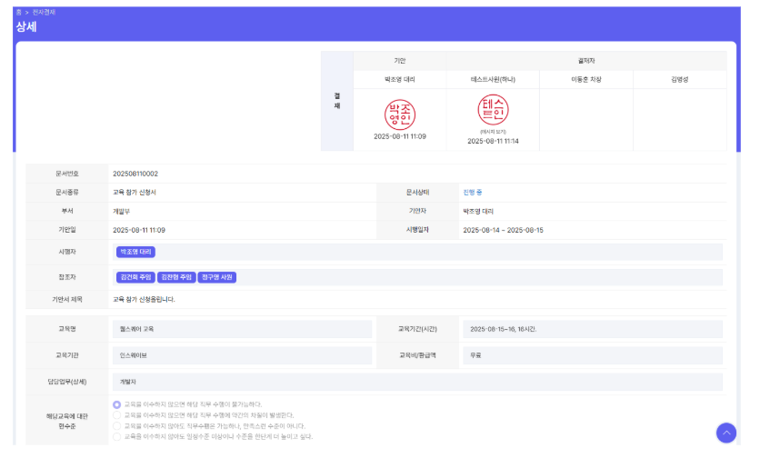 전자결재 : 다양한 양식 기반의 결재 프로세스 제공