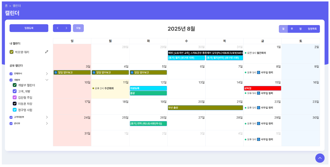 캘린더 : 개인 및 부서 캘린더, 공유일정 등록 및 조회
