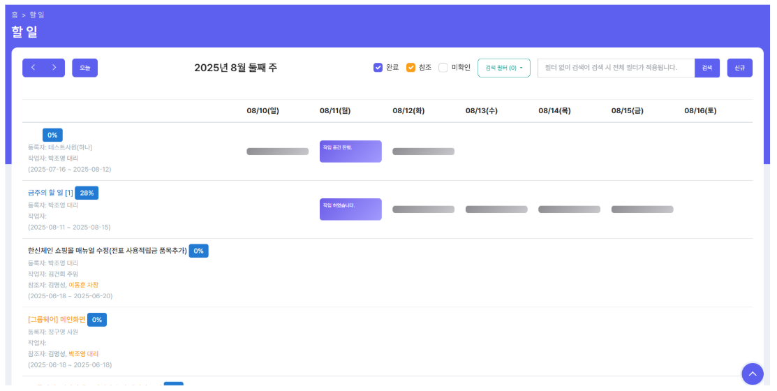 할 일 : 협업이 필요한 업무를 공유/작업 이력 등록