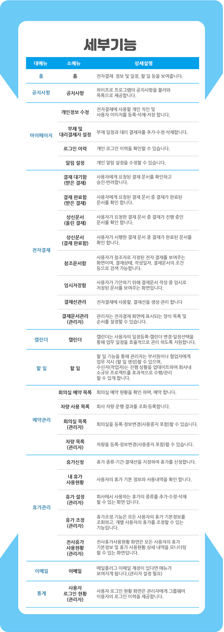 아래는 그룹웨어가 제공하는 주요 기능입니다.