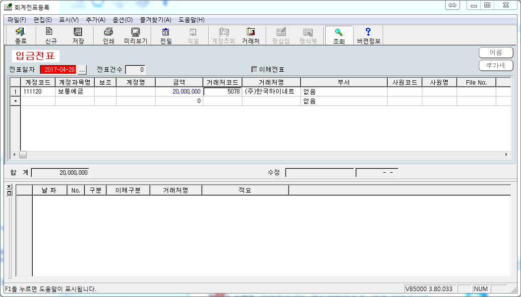 - 입금전표/출금전표/대체전표 구분 등록