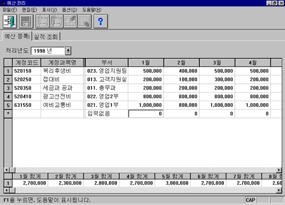 월별,부서별 예산등록으로 효율적인 자금운용