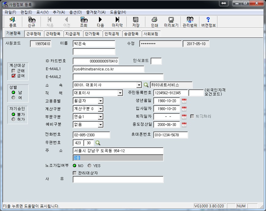 Win Power 인사급여는 다양한 계산식을 적용하여 특히 매년 변경되는 세법에 신속하게 대응하기 위하여 세액 Table을 제공하고 있으며, 일급자, 월급자, 시급자에 대한 근태 및 급여처리도 손쉽게 처리되도록 구성되어 있습니다.